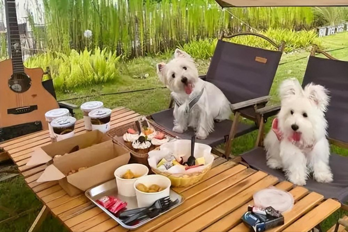 小区里新搬来的年轻人,周末总带着宠物去露营。